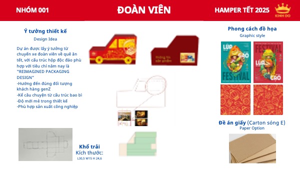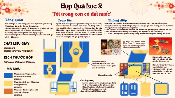 LẤY CẢM HỨNG TỪ PHONG TỤC TRƯNG HOA NGÀY TẾT Bối cảnh Gia đình trẻ sống trong căn hộ nhỏ, không gian tối giản nên việc trang trí Tết thường bị giản lược. Ý tưởng sáng tạo Khi mở ra, hộp bung nở như bông hoa xuân – biểu tượng của sự sum vầy, khởi sắc. Từ hộp quà trở thành vật trang trí, lưu giữ kỷ niệm và không khí Tết.